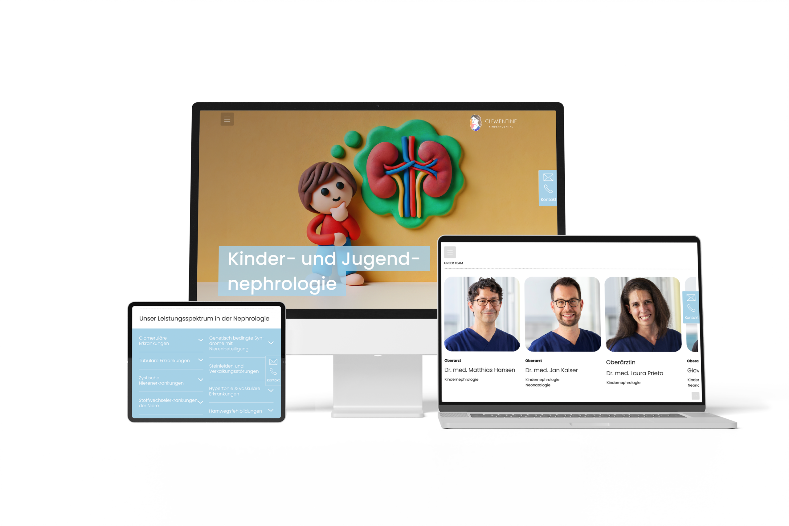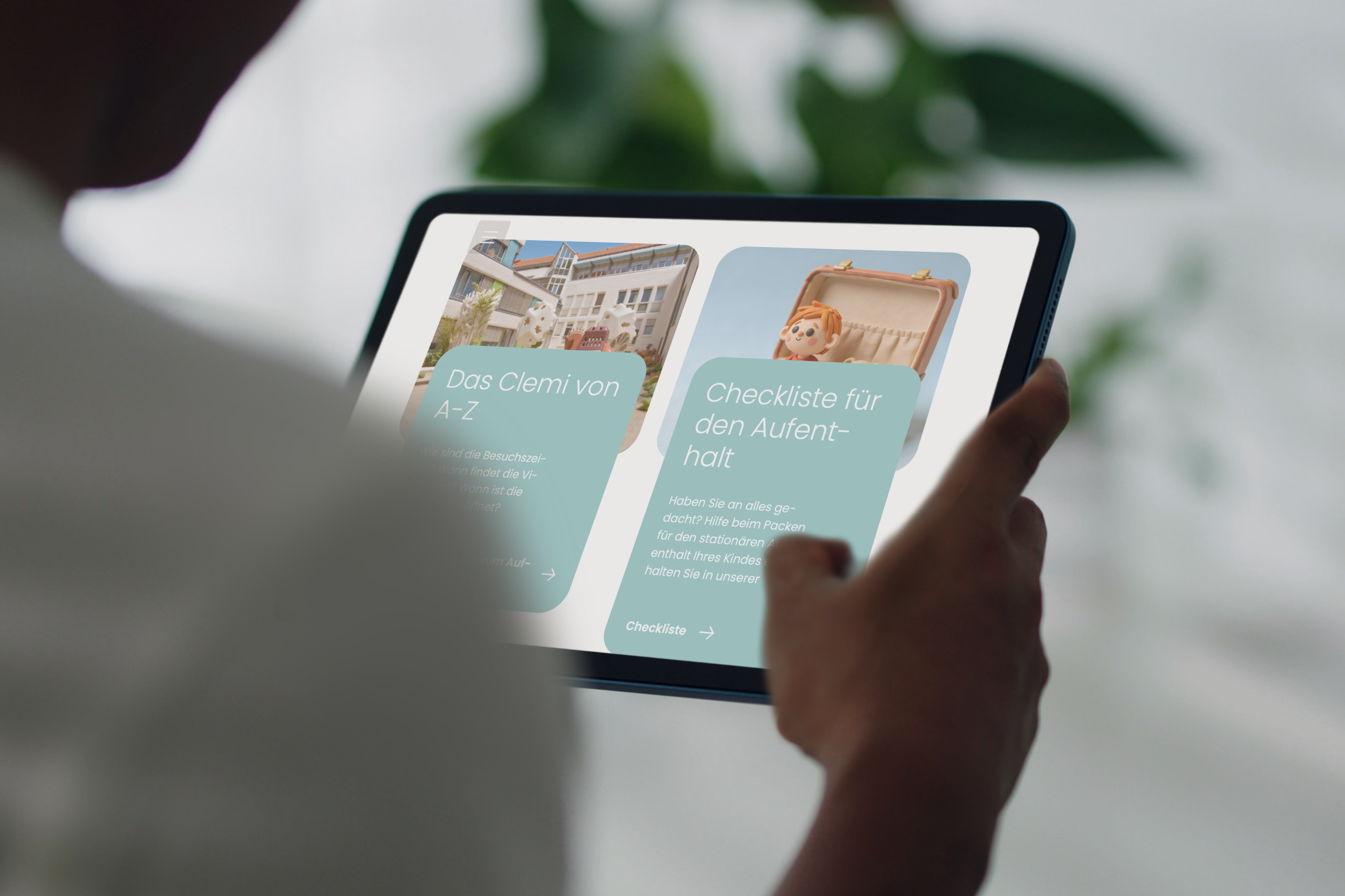 Für das Clementine Kinderhospital haben wir ein Website-Refresh umgesetzt, das medizinische Kompetenz und emotionale Nähe vereint. Als zentrales Medium der Kommunikation übersetzt die Website den Anspruch der Klinik in ein digitales Erlebnis, das Orientierung gibt, Vertrauen aufbaut und Familien intuitiv durch komplexe Inhalte führt – optimiert für die mobile Nutzung und im Einklang mit dem weiterentwickelten Corporate Design.